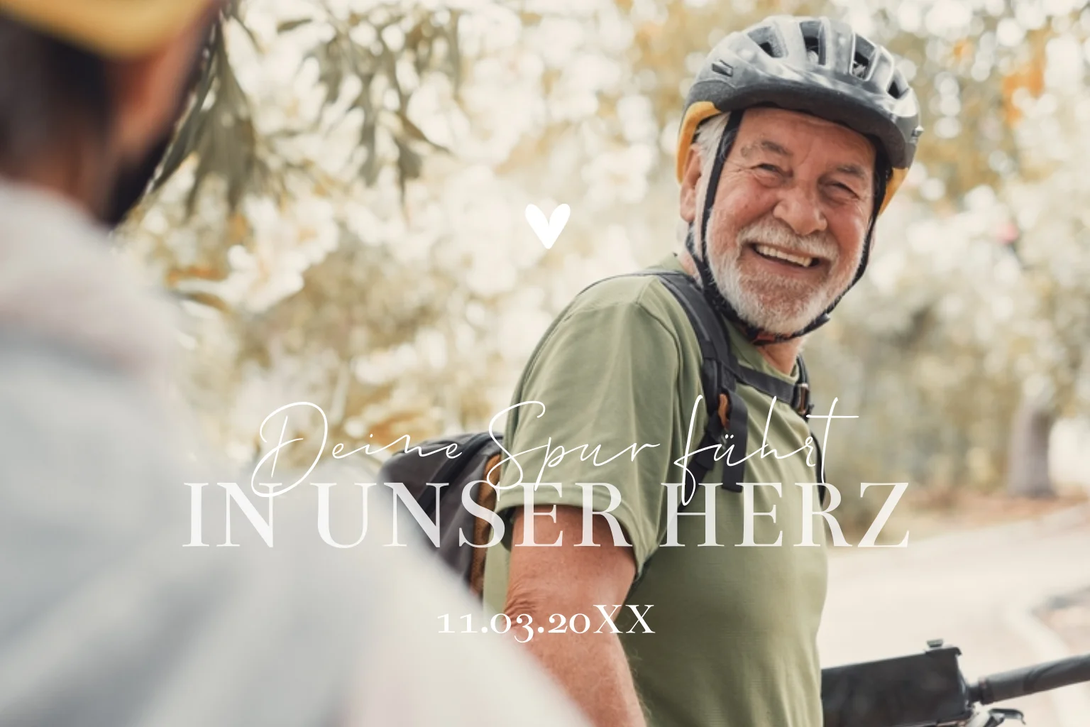 Dankeskarte Trauer mit Herz, Foto und typografischem Design. Bearbeite das Design einfach im Online-Editor.