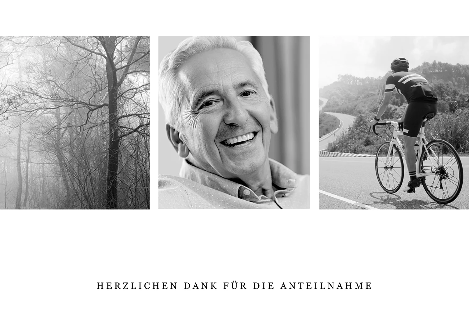 Individuelle Danksagung mit persönlicher Fotocollage – ideal zur Erinnerung an ein aktives Leben. Stilvoll und hochwertig gestaltbar.