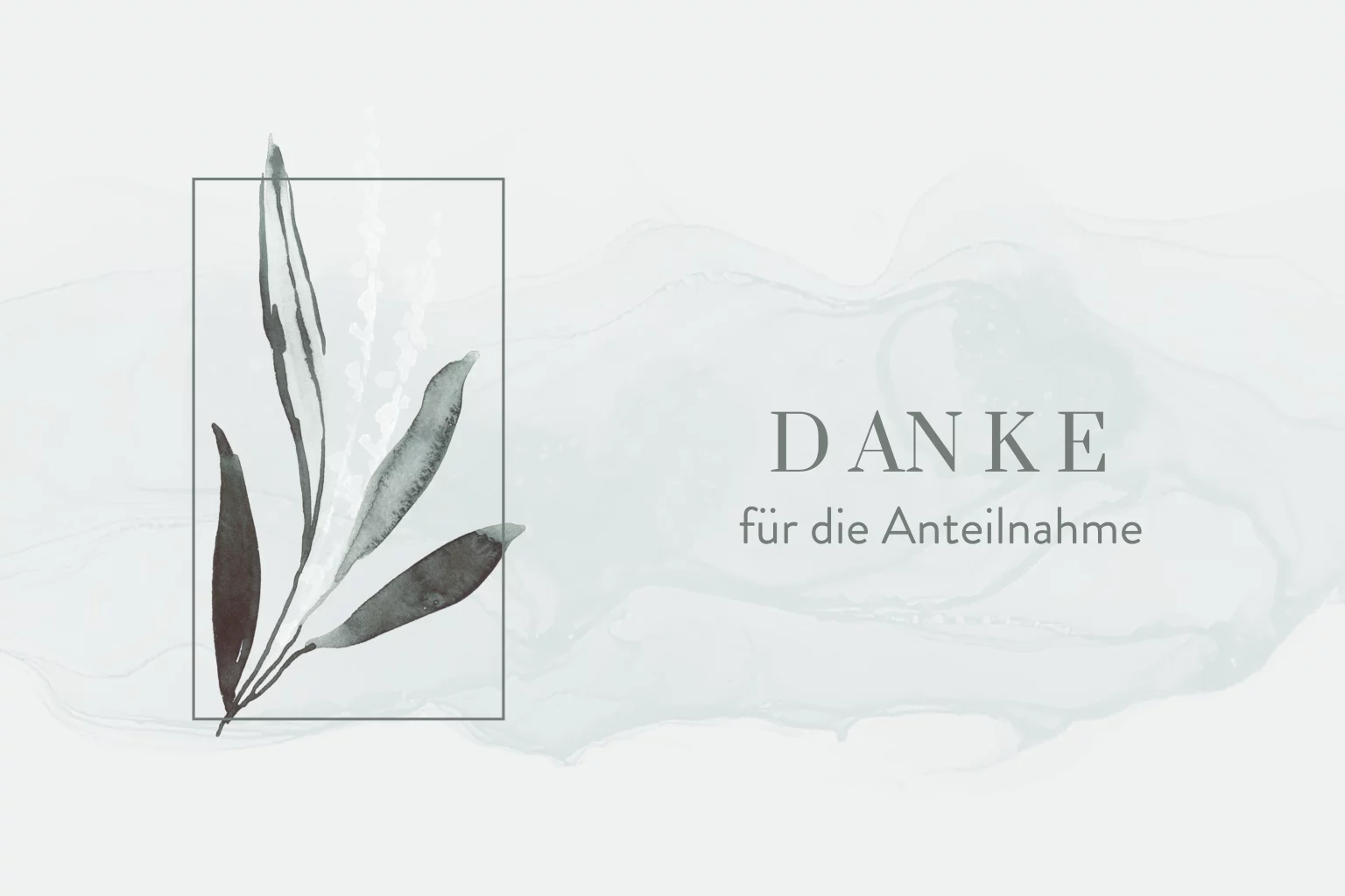 Dankeskarte Trauer mit Zweig und Grüntönen