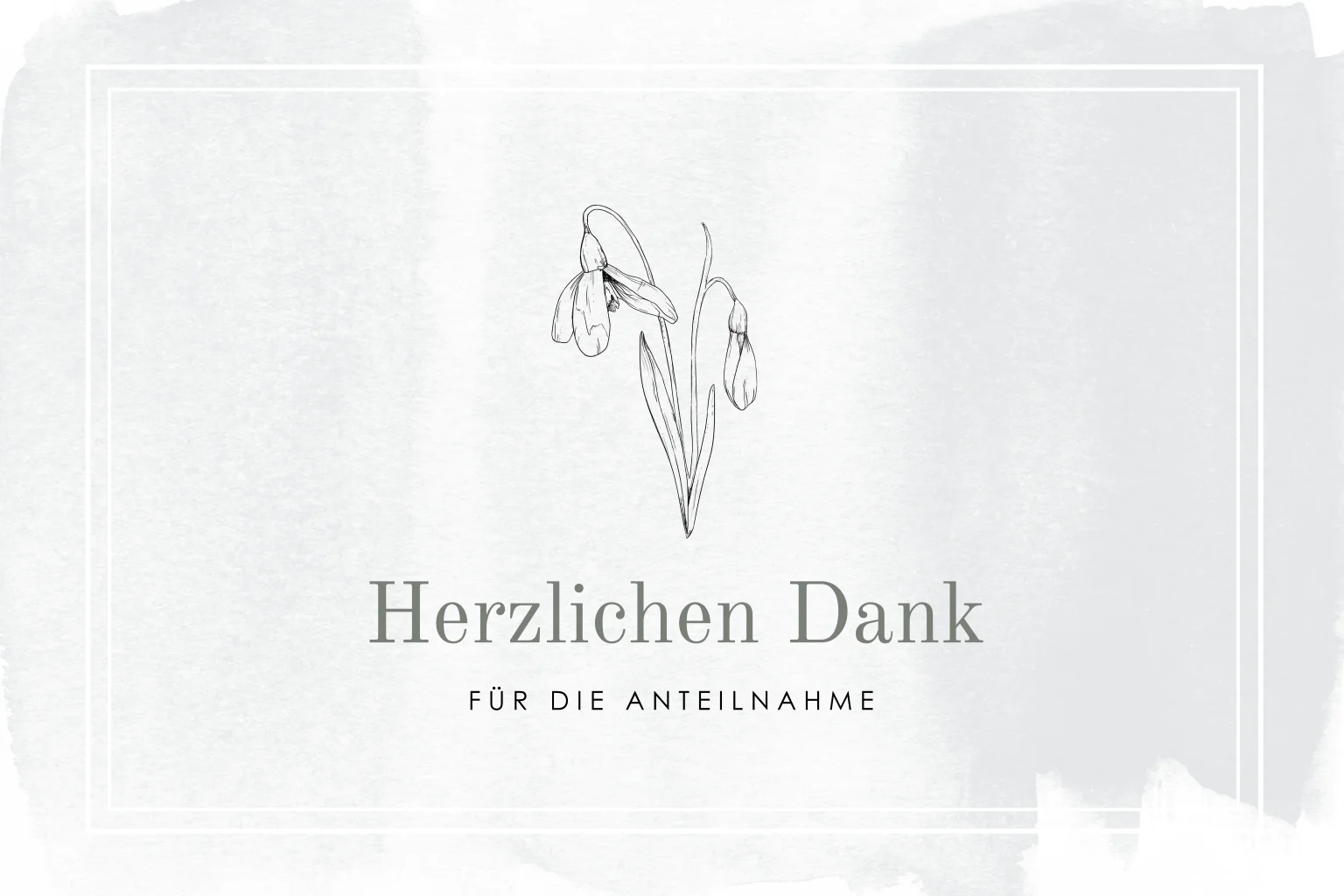 Dezente Trauer Dankeskarte mit Schneeglöckchen und Aquarell-Look