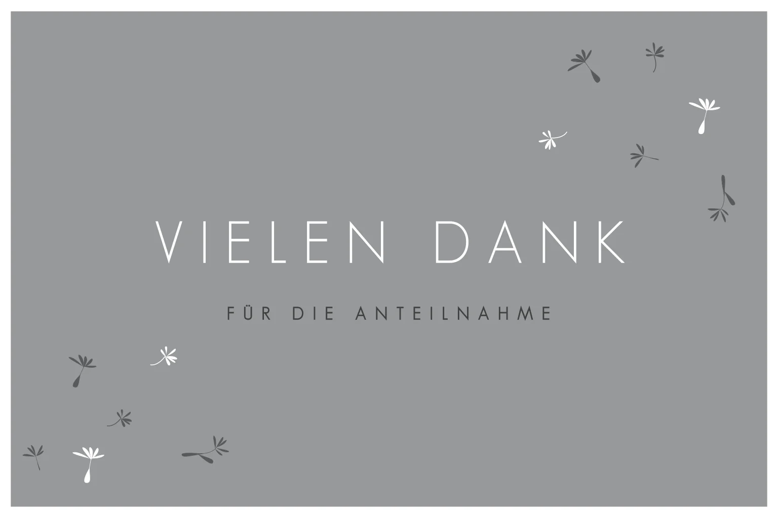 Moderne Trauer Danksagungskarte in Grau mit Pusteblumen-Design