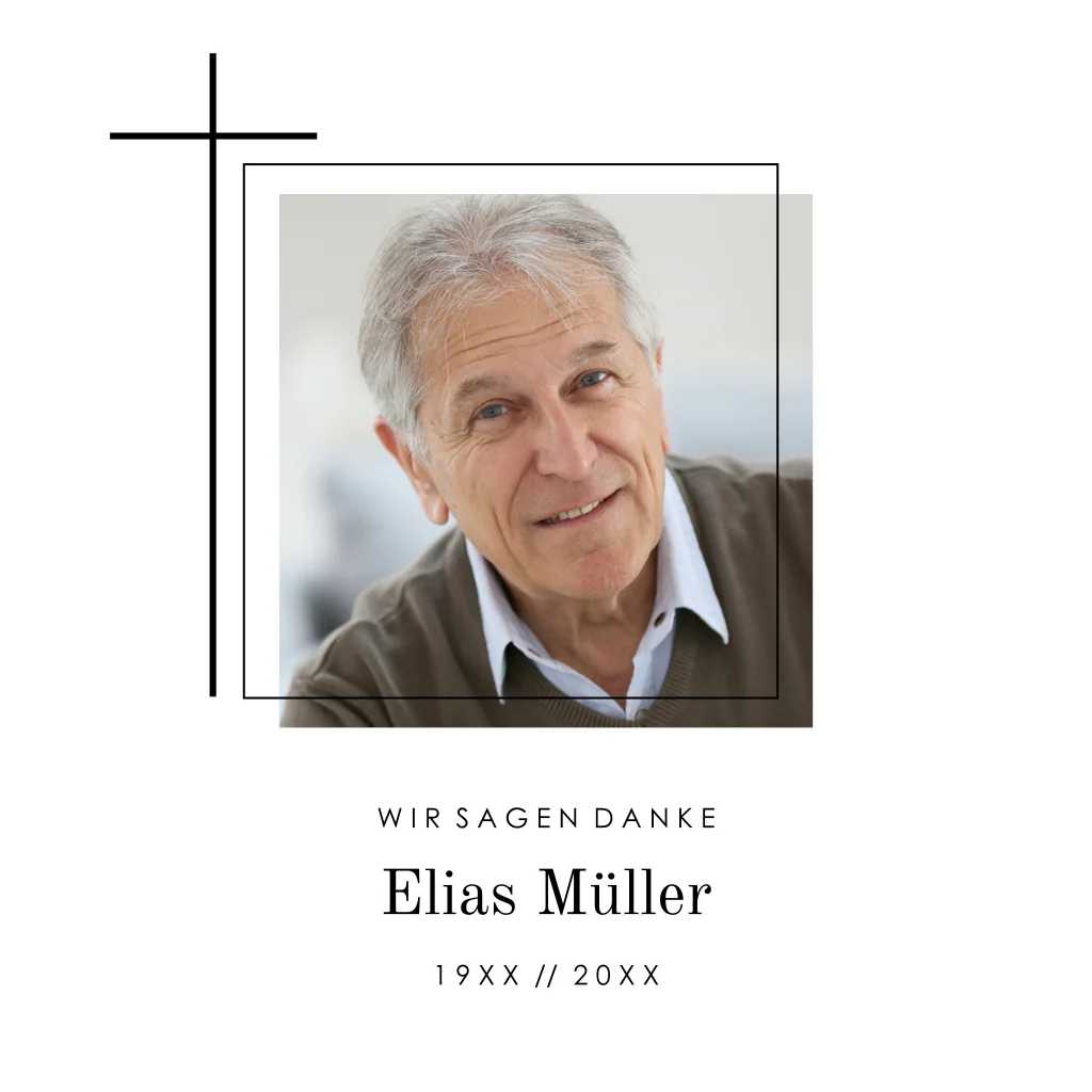 Schlichte Danksagung Trauerkarte mit Foto und Kreuz in Schwarz