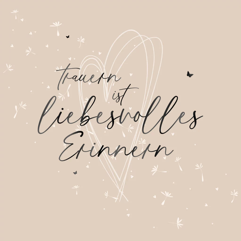 Trauer Danksagung in Beige mit weißen Illustrationen und Herz