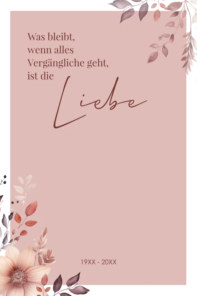 Schöne Trauer Danksagungskarte in Altrosa mit Blumenillustration