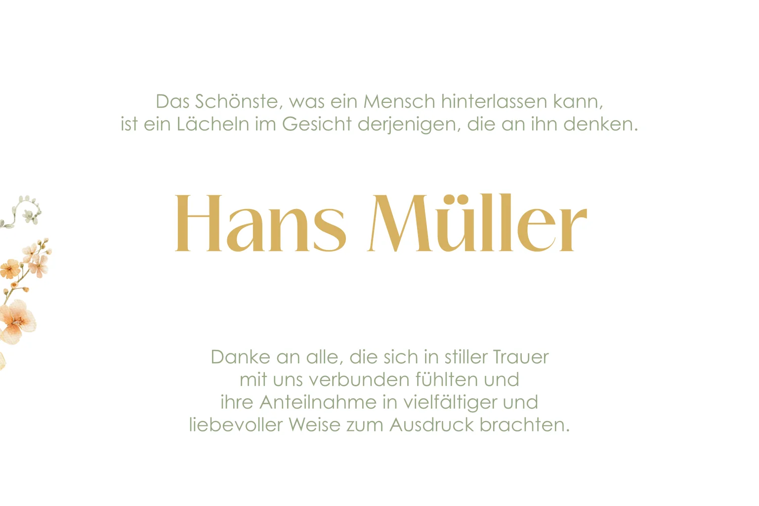 Trauer Danksagung Klappkarte mit Blumenwiese. Ideal zur Danksagung nach dem Verlust eines geliebten Menschen - selbst gestaltbar online.