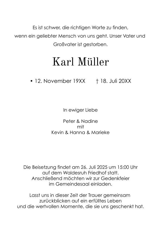 Einladung zur Trauerfeier mit Saxophon Illustration