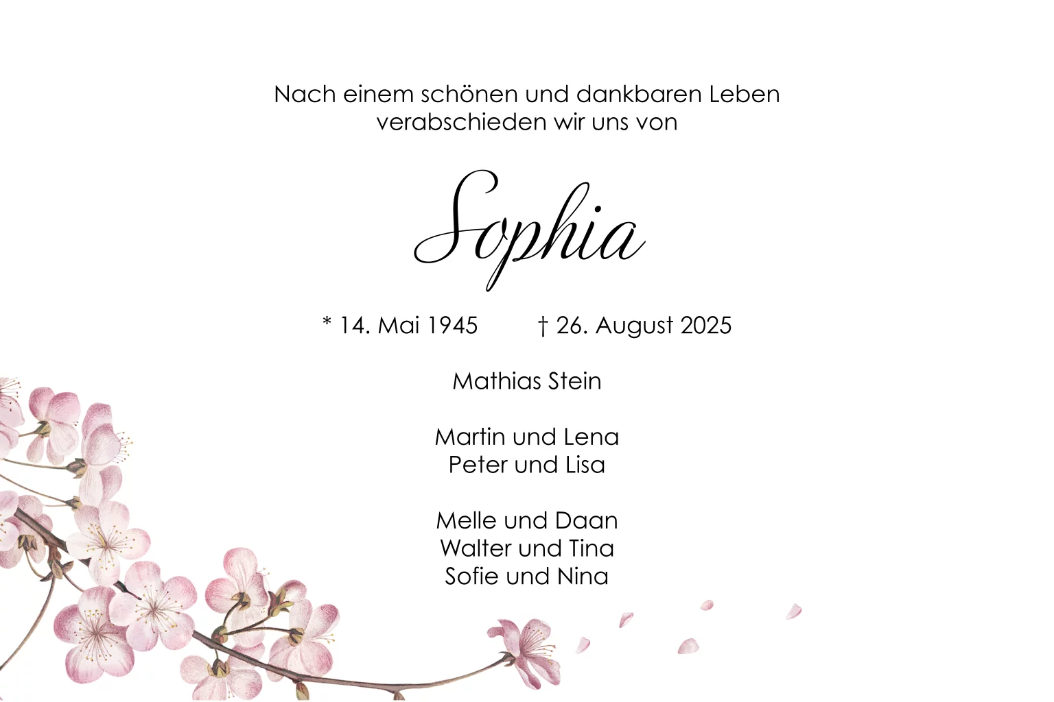 Das Design der von dir gewählten Karte wurde automatisch in andere Formate umgestellt. Wähle einfach deinen Wunschformat aus und platziere alle Texte und Elemente an der richtigen Stelle im Editor. Du hast Fragen oder dein Favorit steht nicht zur Auswahl? Dann kontaktiere uns bitte und wir werden uns gemeinsam darum kümmern!
