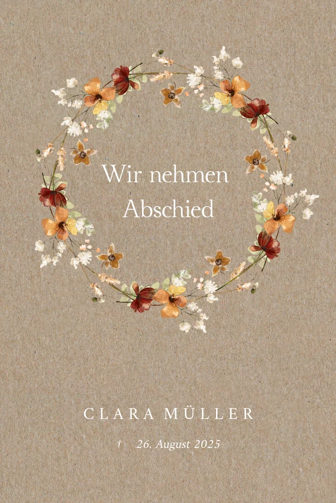 Kraftlook-Trauerkarte mit Kranz und Schmetterling