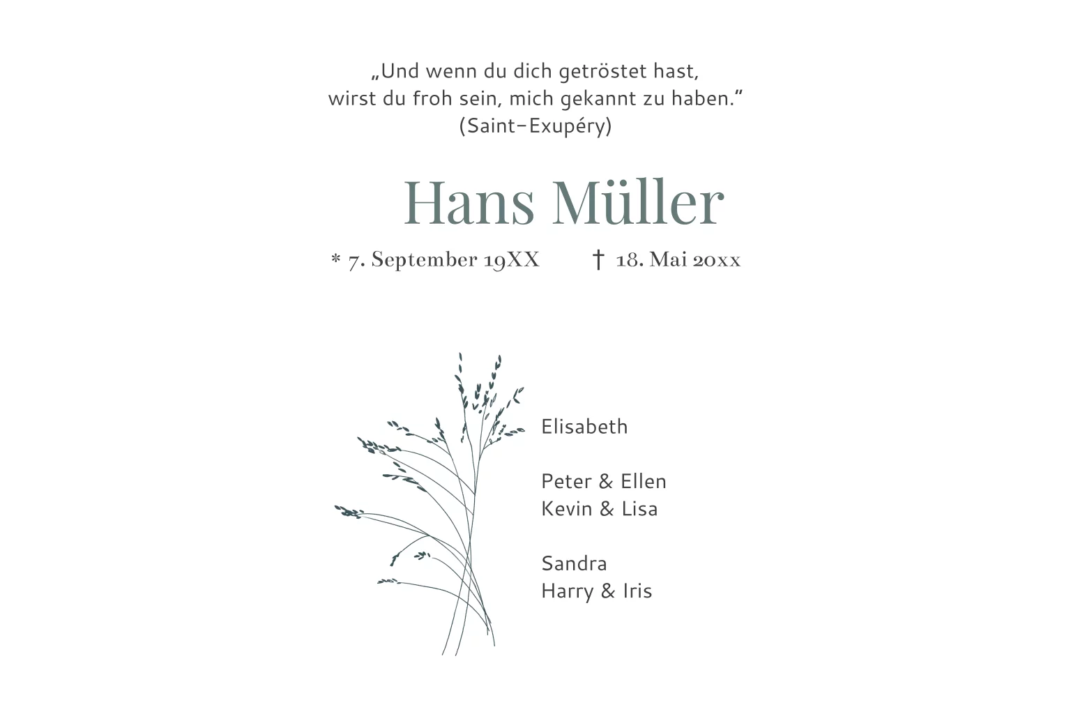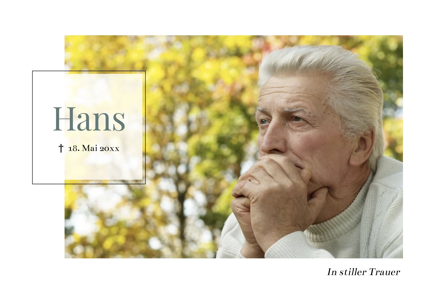 Moderne, schlichte Trauerkarte mit Foto und Rahmen.