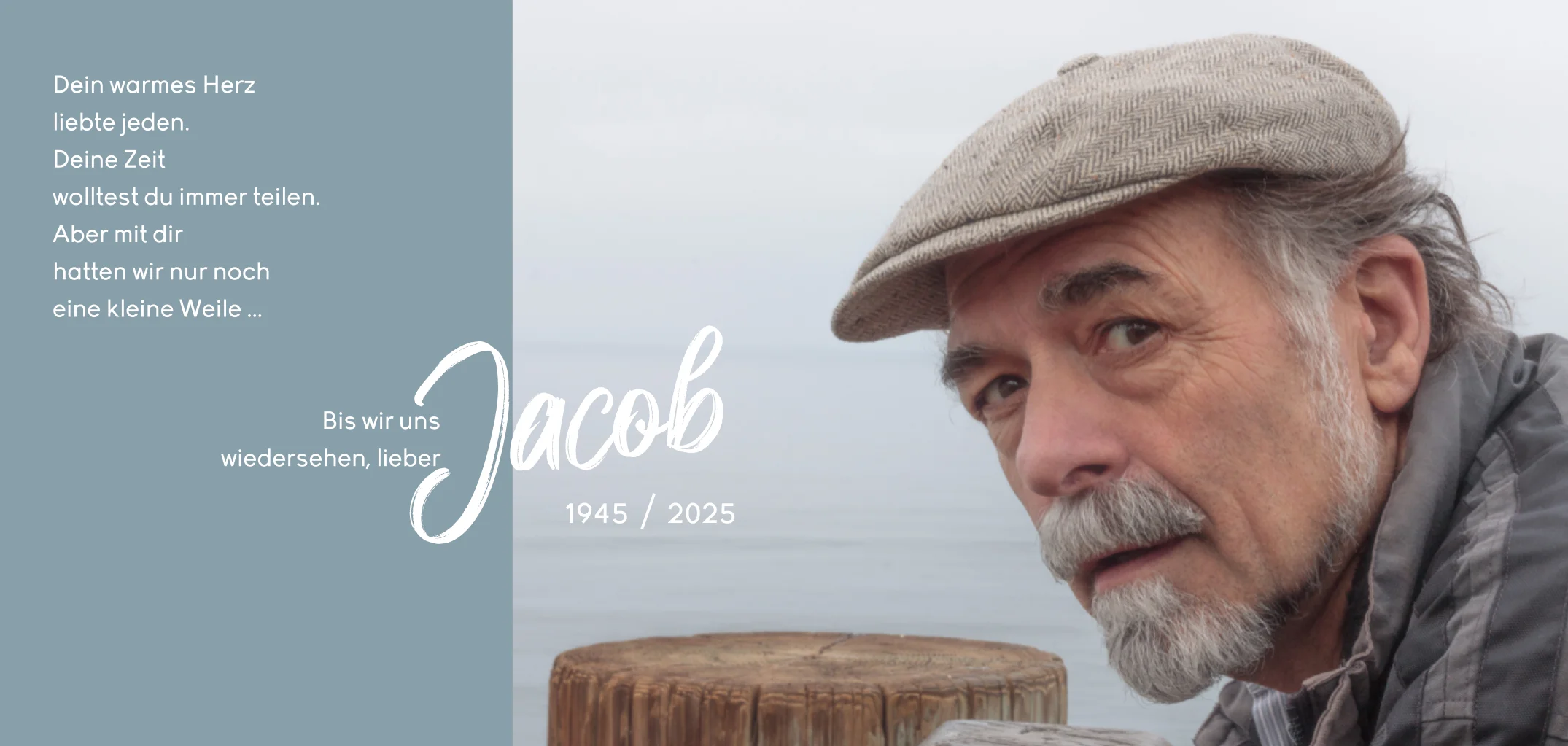 Stilvolle Trauerkarte in Blautönen mit großem Foto
