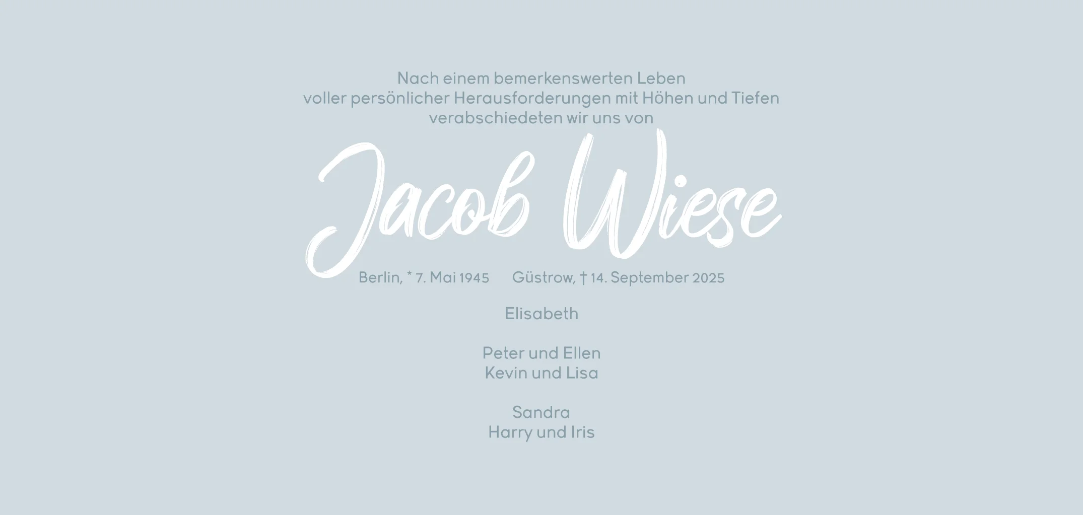 Einen geliebten Menschen zu verlieren, ist schwer. Gestalte hier stilvolle Trauerkarten für einen würdevollen, passenden Abschied. Entdecke unsere große Auswahl an Designvorlagen und personalisiere diese einfach und schnell in unserem kinderleichten Editor.
