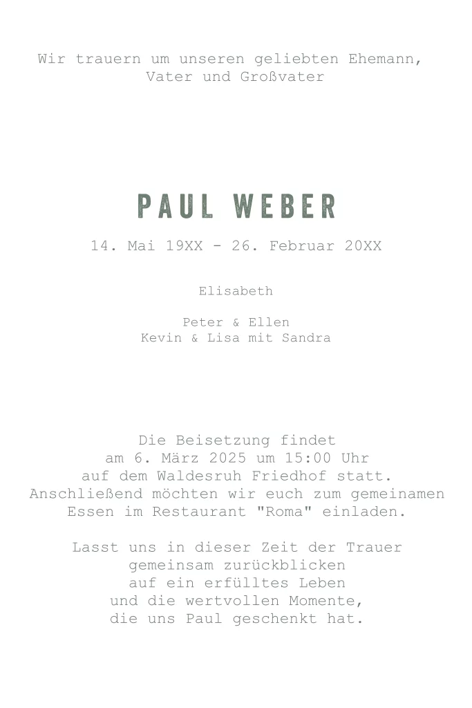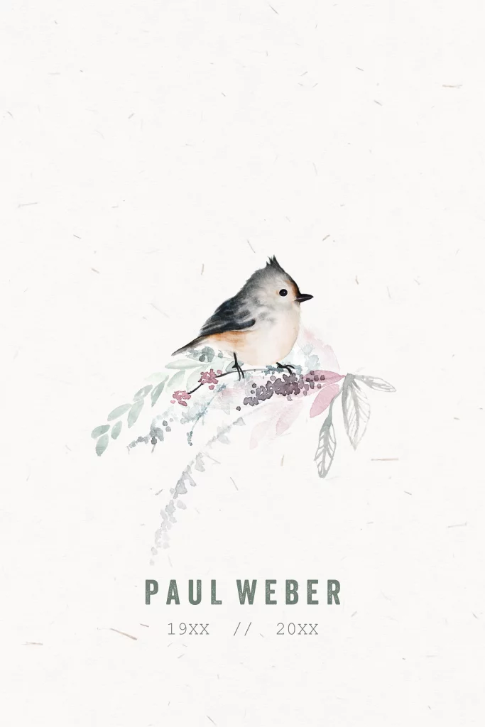 Trauerkarte mit Aquarellzeichnung Vogel.