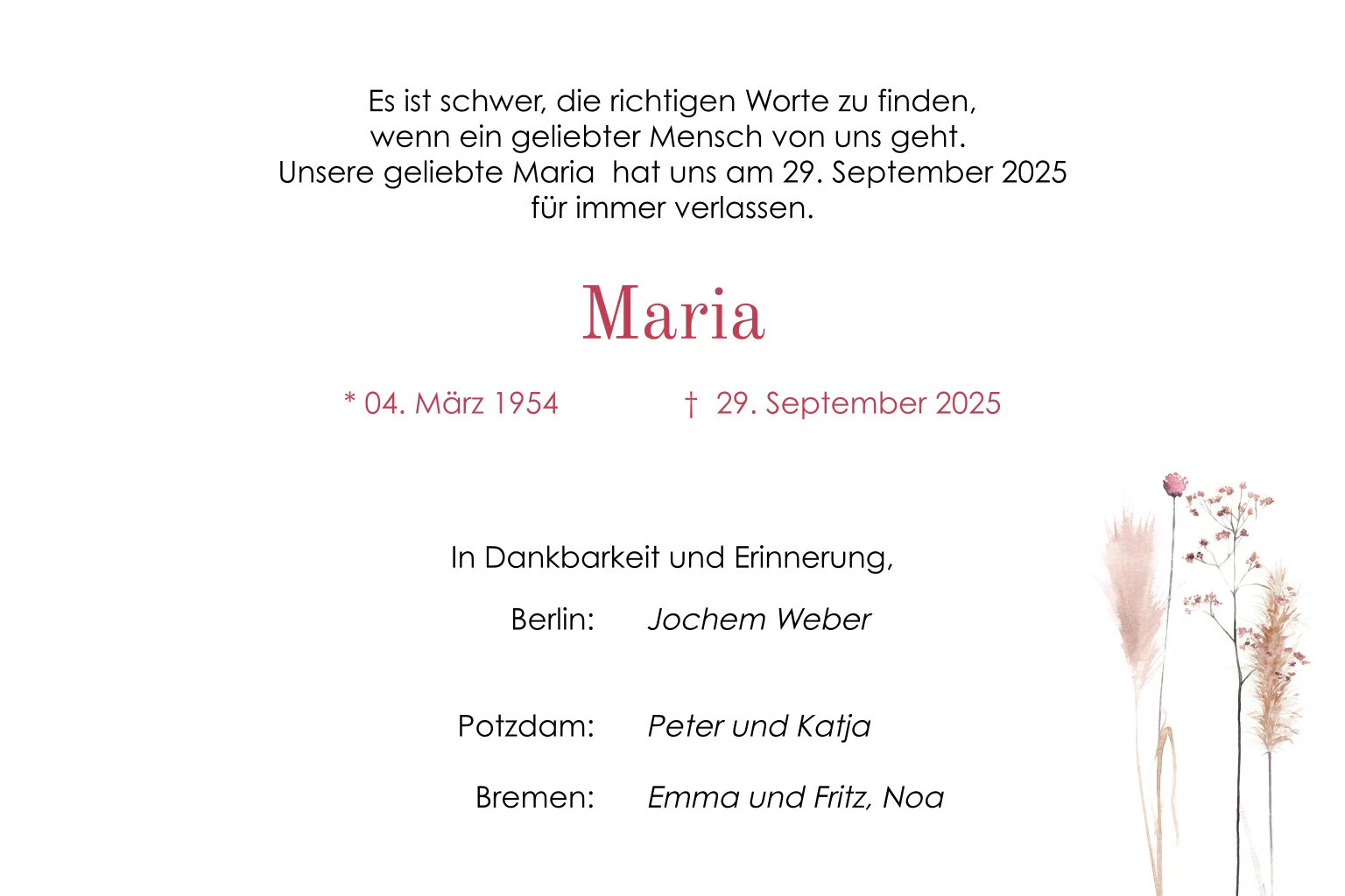 Trauerkarte "Dünen" und FotoDas Design der von dir gewählten Karte wurde automatisch in andere Formate umgestellt. Wähle einfach deinen Wunschformat aus und platziere alle Texte und Elemente an der richtigen Stelle im Editor. Du hast Fragen oder dein Favorit steht nicht zur Auswahl? Dann kontaktiere uns bitte und wir werden uns gemeinsam darum kümmern!