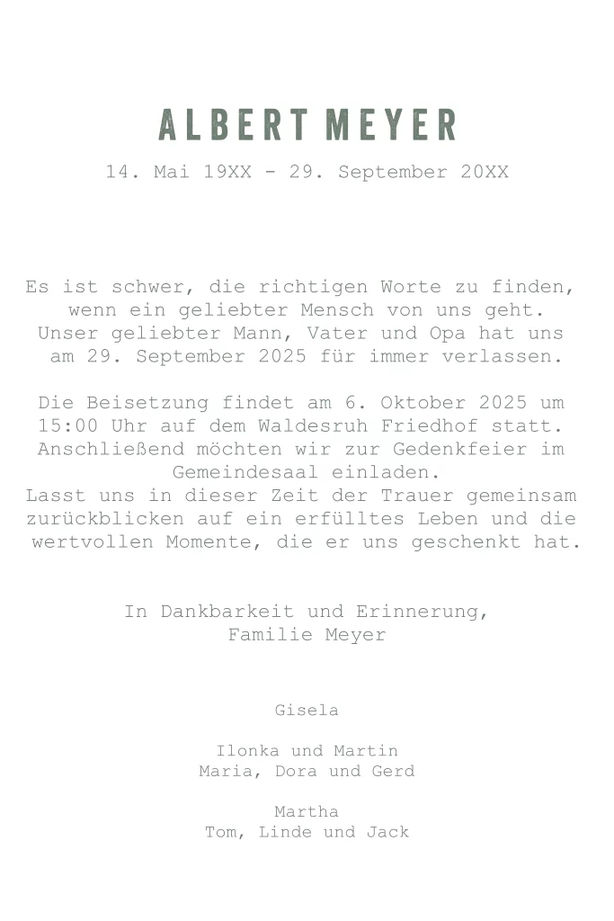 Einen geliebten Menschen zu verlieren, ist schwer. Um Angehörige, Freunde und Verwandte darüber zu informieren, sind Trauerkarten eine angemessene Möglichkeit. Wähle dein Wunschdesign im passenden Format oder gestalte selbst. Dank unseres einfach zu bedienenden Editors kannst du deine Trauerkarten ganz nach deinen Wünschen mit Bildern, Texten und Veredelungen gestalten.