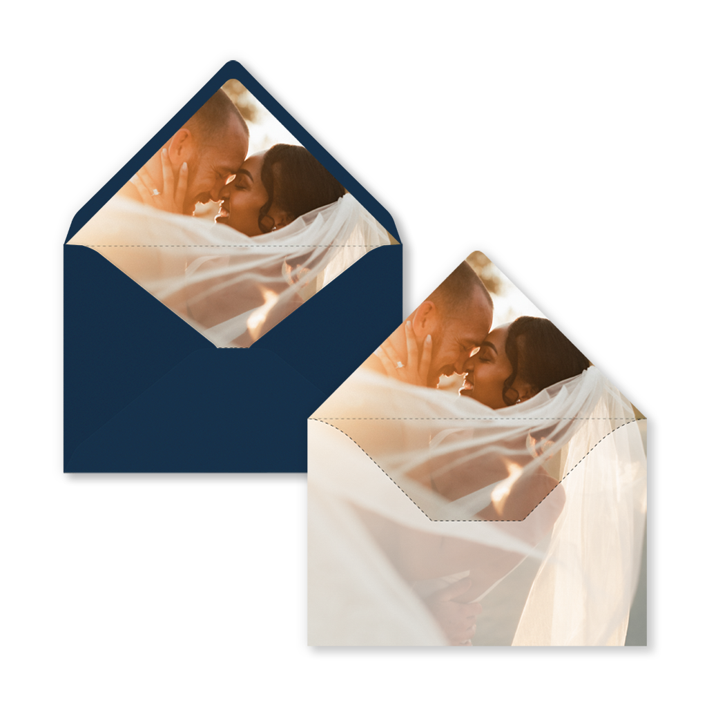 Öffnen, staunen und begeistert sein! Wir bieten Umschlag-Einlagen für die folgenden Umschlaggrößen an: 12x18, 14x14 und 22x11. Auf Anfrage können wir dieses Design in ein anderes Format ändern oder eine Einlage im Stil deiner Hochzeitskarte erstellen.
