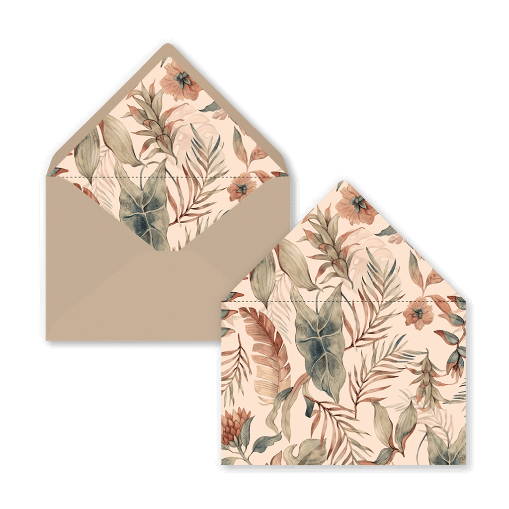 Öffnen, staunen und begeistert sein! Wir bieten Umschlag-Einlagen für die folgenden Umschlaggrößen an: 12x18, 14x14 und 22x11. Auf Anfrage können wir dieses Design in ein anderes Format ändern oder eine Einlage im Stil deiner Hochzeitskarte erstellen.