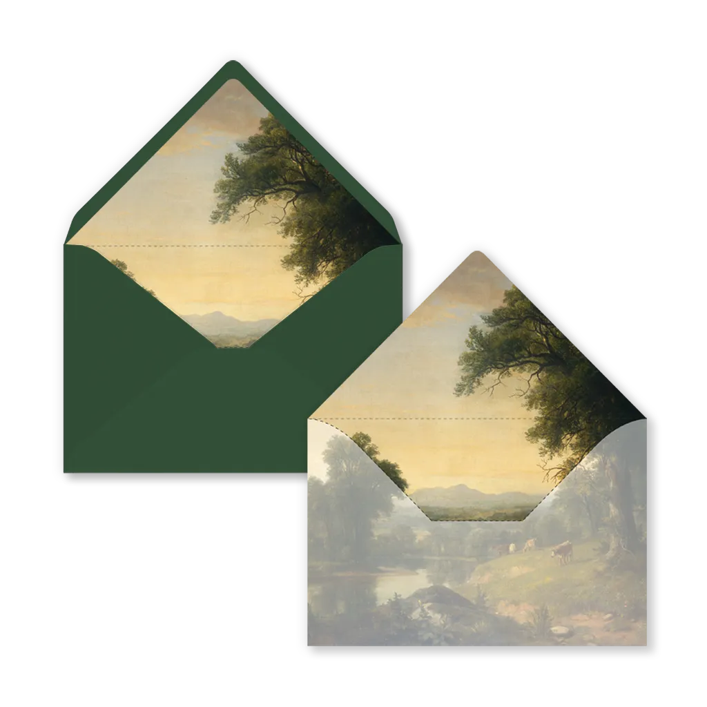 Öffnen, staunen und begeistert sein! Wir bieten Umschlag-Einlagen für die folgenden Umschlaggrößen an: 12x18, 14x14 und 22x11. Auf Anfrage können wir dieses Design in ein anderes Format ändern oder eine Einlage im Stil deiner Hochzeitskarte erstellen.