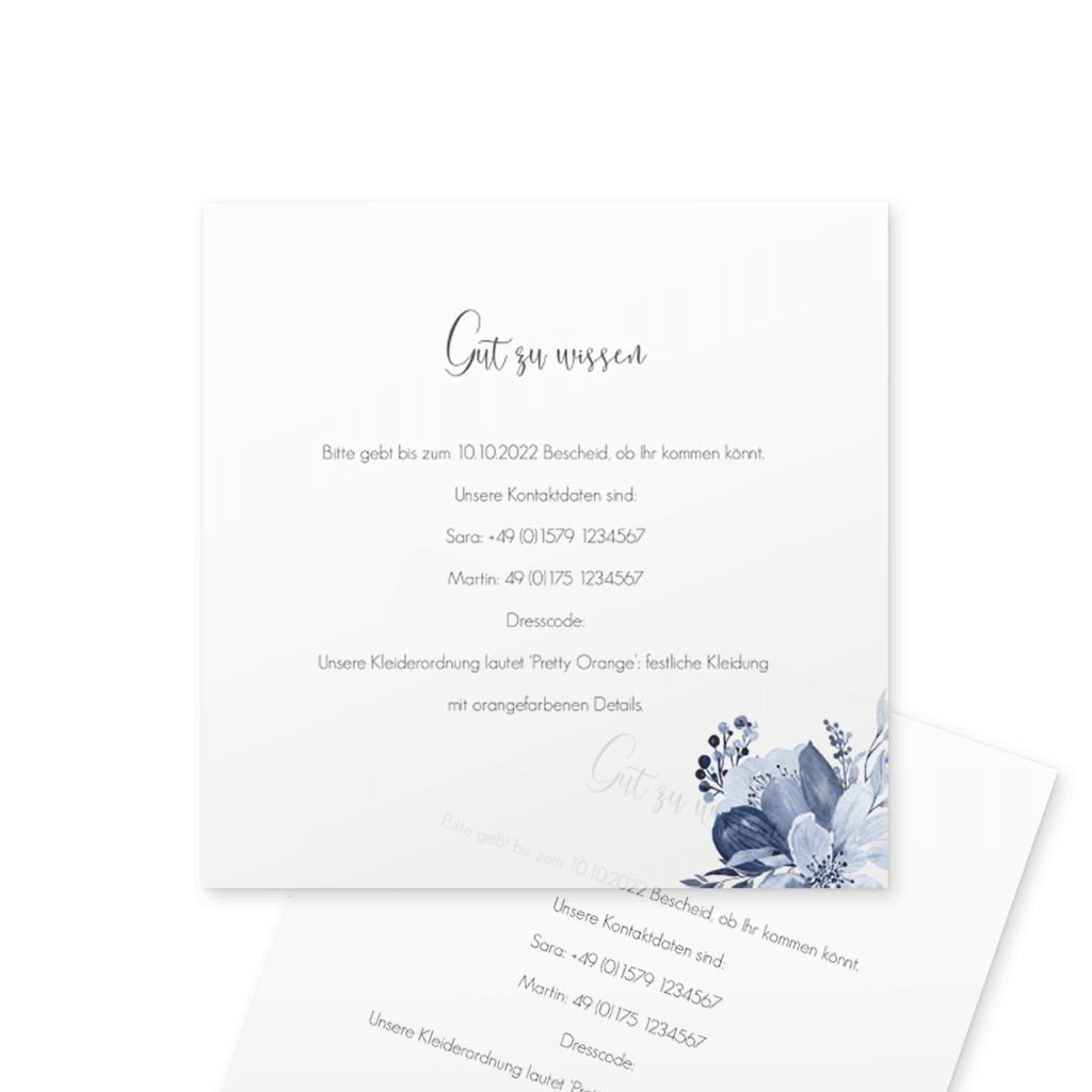 Hinweis: Ein Einlegeblatt ist das perfekte Extra für deine Hochzeitseinladungen. Auf den dünnen Einlegern hast du die Möglichkeit, extra Infos für die Gäste hinzuzufügen.