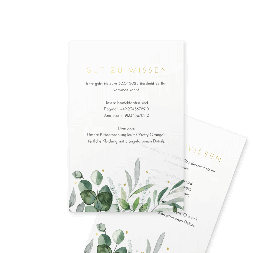 Hinweis: Ein Einlegeblatt is das perfekte Extra für deine Hochzeitseinladungen. Auf den dünnen Einlegern hast du die Möglichkeit, extra Infos für die Gäste hinzuzufügen.