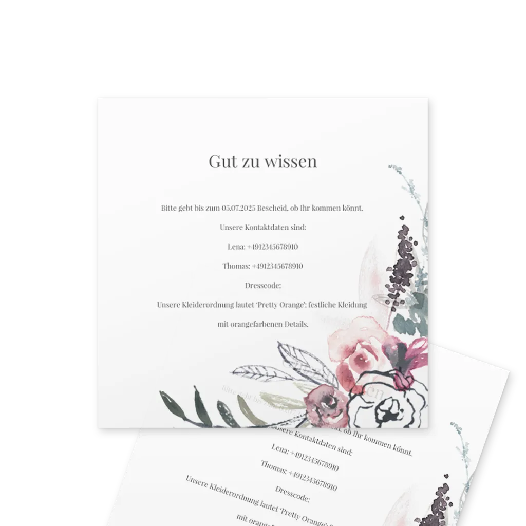 undHinweis: Ein Einlegeblatt ist das perfekte Extra für deine Hochzeitseinladungen. Auf den dünnen Einlegern hast du die Möglichkeit, extra Infos für die Gäste hinzuzufügen.