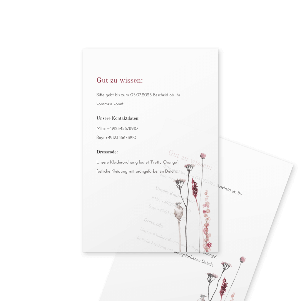 undHinweis: Ein Einlegeblatt ist das perfekte Extra für deine Hochzeitseinladungen. Auf den dünnen Einlegern hast du die Möglichkeit, extra Infos für die Gäste hinzuzufügen.