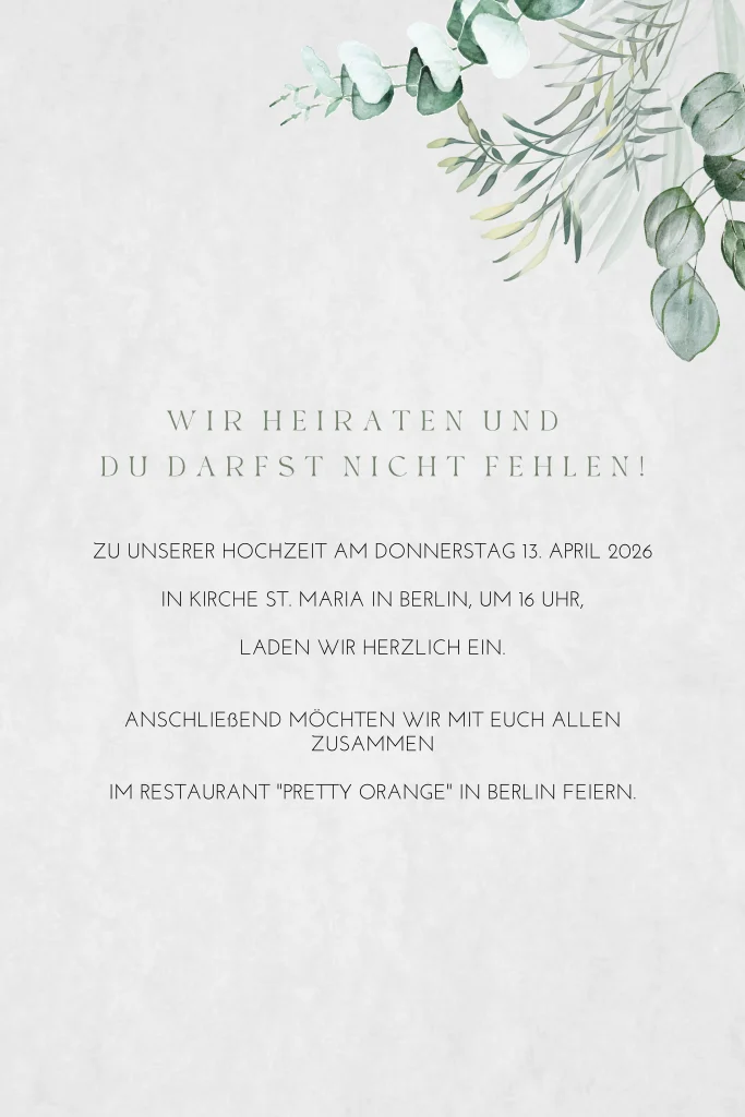Dieses Produkt ist Teil des Hochzeitskarten-Sets ' Eukalyptusflair ' 'Eucalyptus Wedding'.