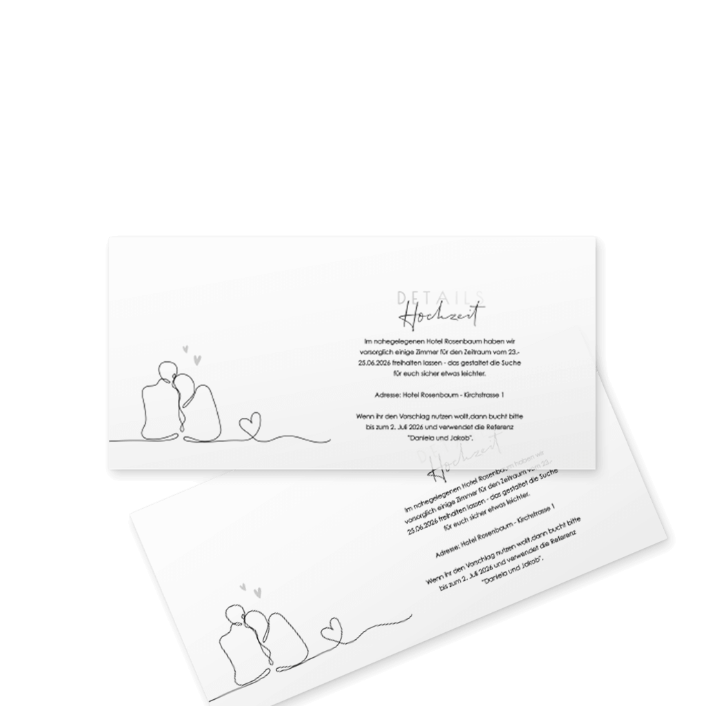 Hinweis: Ein Einlegeblatt ist das perfekte Extra für deine Hochzeitseinladungen. Auf den dünnen Einlegern hast du die Möglichkeit, extra Infos für die Gäste hinzuzufügen.