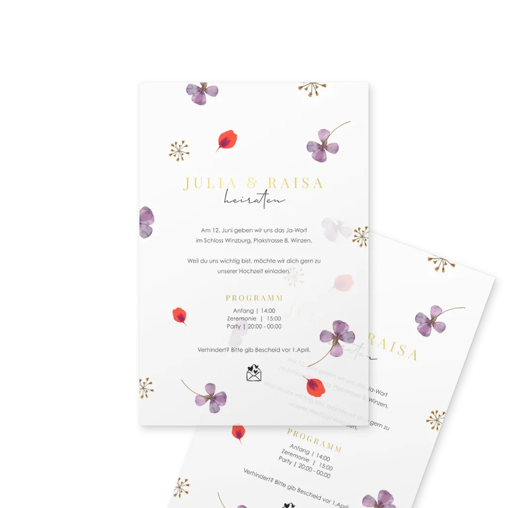 Hochzeitseinladung aus Transparentpapier mit spielerischen Blumen