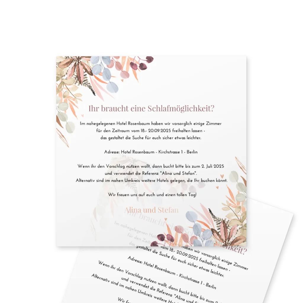Hinweis: Ein Einlegeblatt is das perfekte Extra für deine Hochzeitseinladungen. Auf den dünnen Einlegern hast du die Möglichkeit, extra Infos für die Gäste hinzuzufügen.
