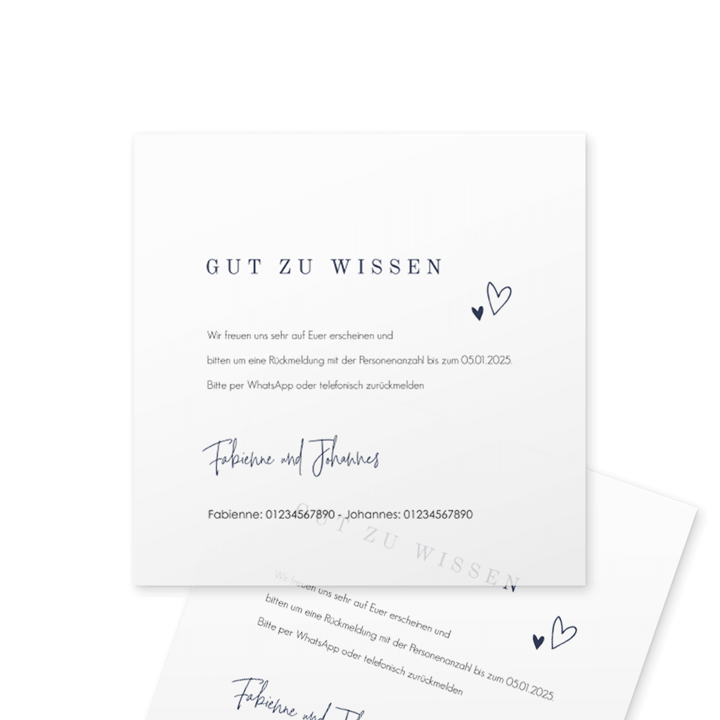 Hinweis: Ein Einlegeblatt is das perfekte Extra für deine Hochzeitseinladungen. Auf den dünnen Einlegern hast du die Möglichkeit, extra Infos für die Gäste hinzuzufügen.