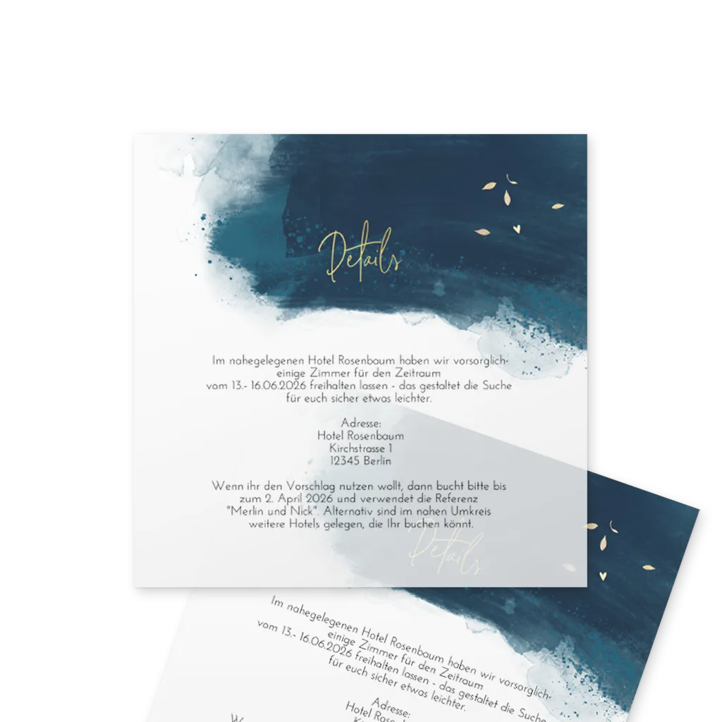 Hinweis: Ein Einlegeblatt ist das perfekte Extra für deine Hochzeitseinladungen. Auf den dünnen Einlegern hast du die Möglichkeit, extra Infos für die Gäste hinzuzufügen.