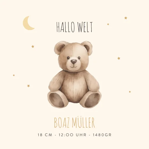 Fotofliese mit Teddybär und gelben Sternenhintergrund.