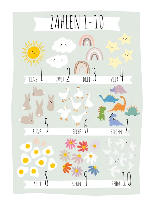 Leinwandposter mit Holzlatten Meine ersten Zahlen