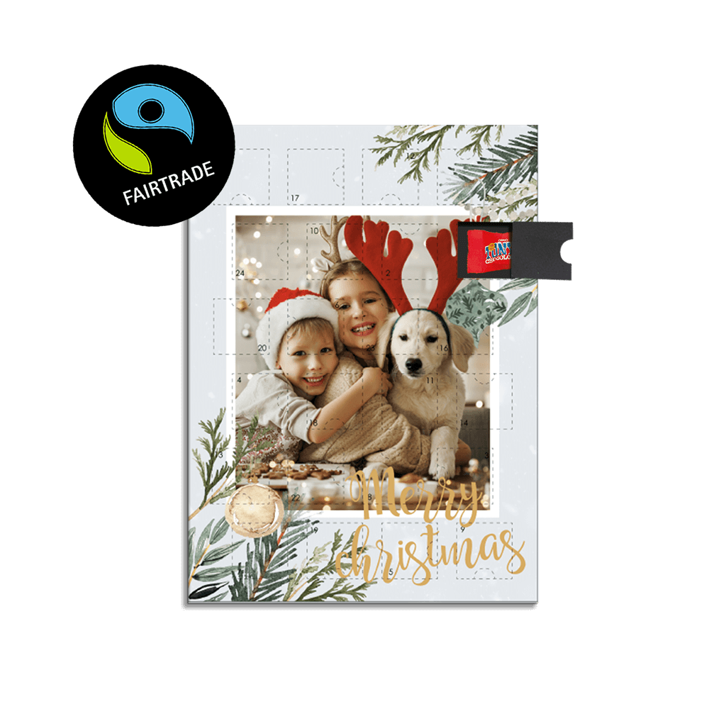 Adventskalender zum Selbst Gestalten. Hinter jedem Türchen findest du Tony's Chocolonely Schokolade.