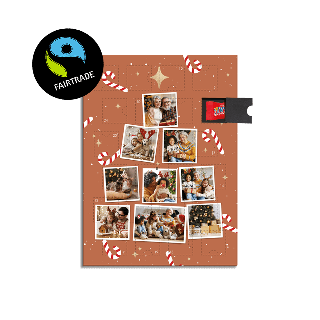 Adventskalender zum Selbst Gestalten. Hinter jedem Türchen findest du Tony's Chocolonely Schokolade.