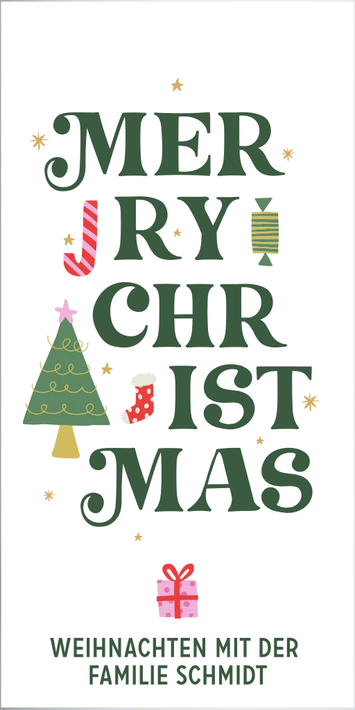 Weihnachts Adventskerze 'Merry Christmas' mit verspielten Icons
