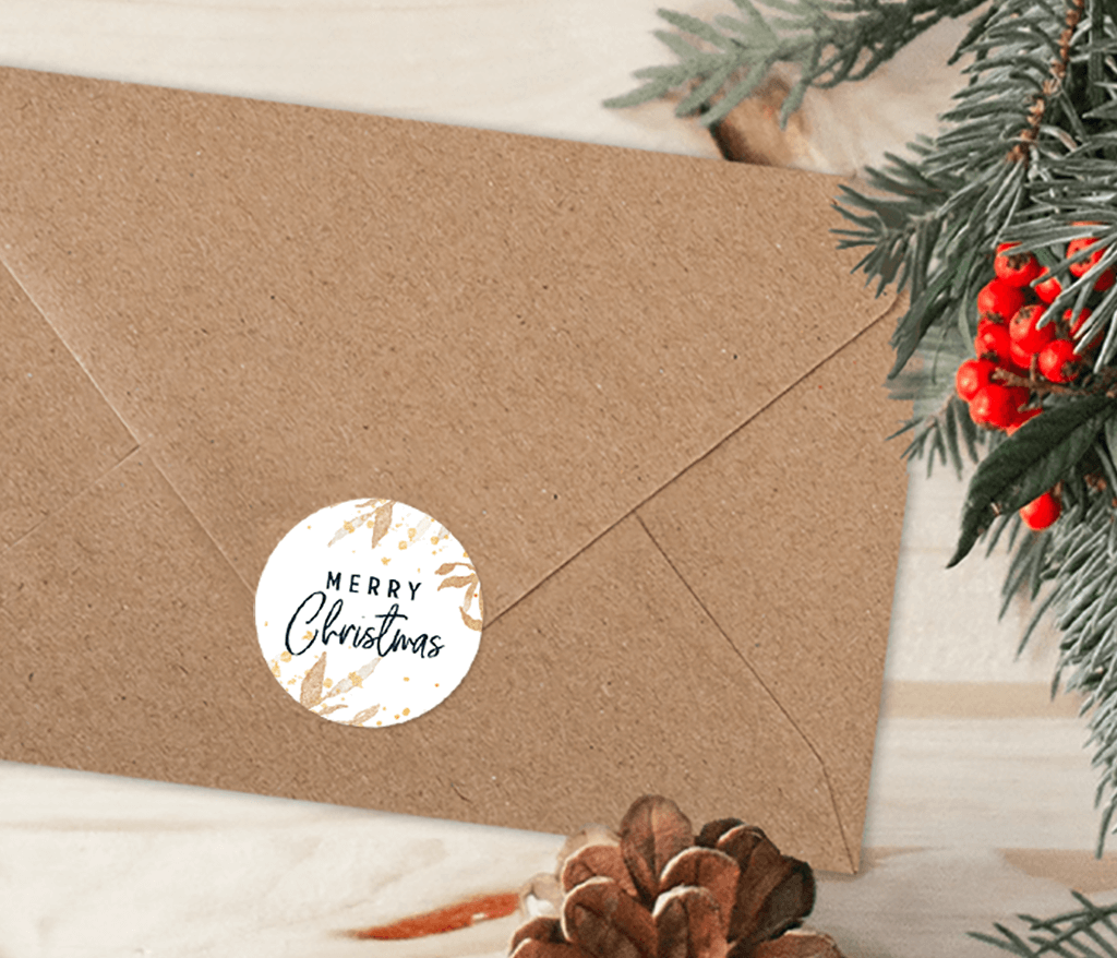 Aufkleber Merry Christmas mit Blättern