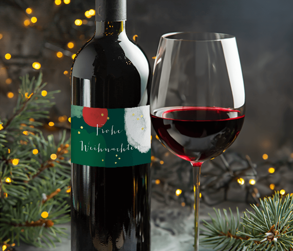 Möchtet ihr personalisierte Flaschen für euer Weihnachtsdinner? Entwirf deine Etiketten selbst und überrasche deine Gäste mit ganz persönlichen Wein-, Sekt- oder Bierflaschen! Du erhältst einen Bogen mit fünf Flaschenetiketten in deinem Design, Format 110 x 80mm.
