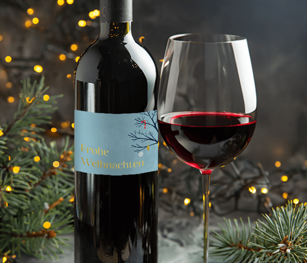 Möchtet ihr personalisierte Flaschen während eurem Weihnachtsdinner? Entwirf deine Etiketten selbst und überrasche deine Gäste mit ganz persönlichen Wein-, Sekt- oder Bierflaschen! Du erhältst einen Bogen mit vier Flaschenetiketten in deinem Design. Format 110 x 80 mm.