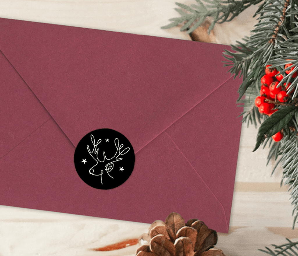 Oneliner Aufkleber mit Rentier in schwarz