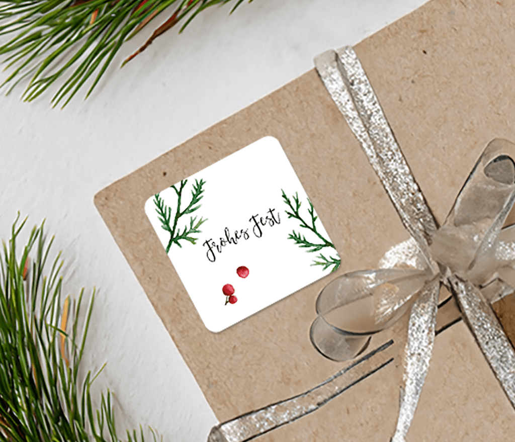 Weihnachtszweige Geschenkaufkleber 50x50mm 12 Stück