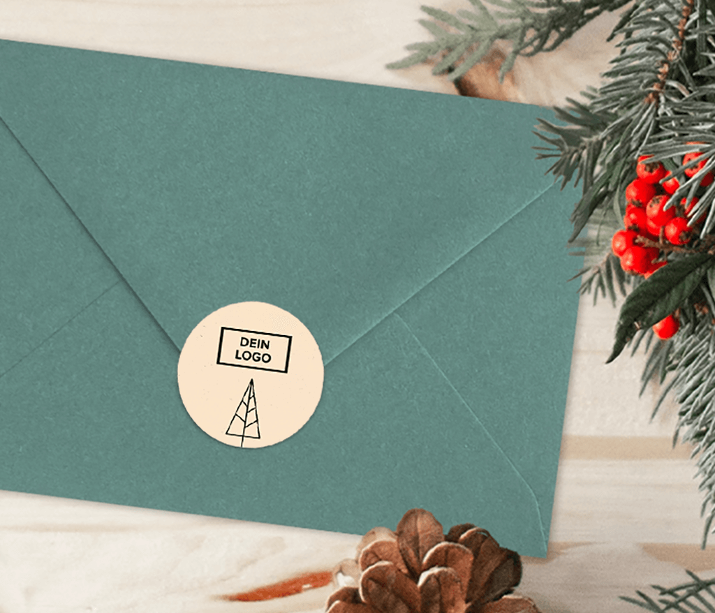 Runder Verschlusssiegel mit Weihnachtsbaum und die Möglichkeit dein eigenes Logo einzusetzen.