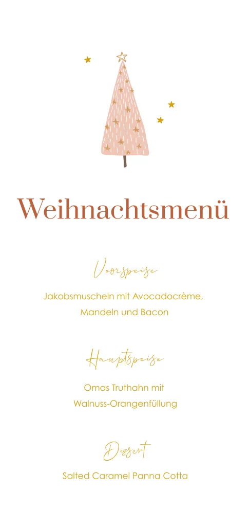 Weihnachtliche Menükarte mit gezeichneter Tanne