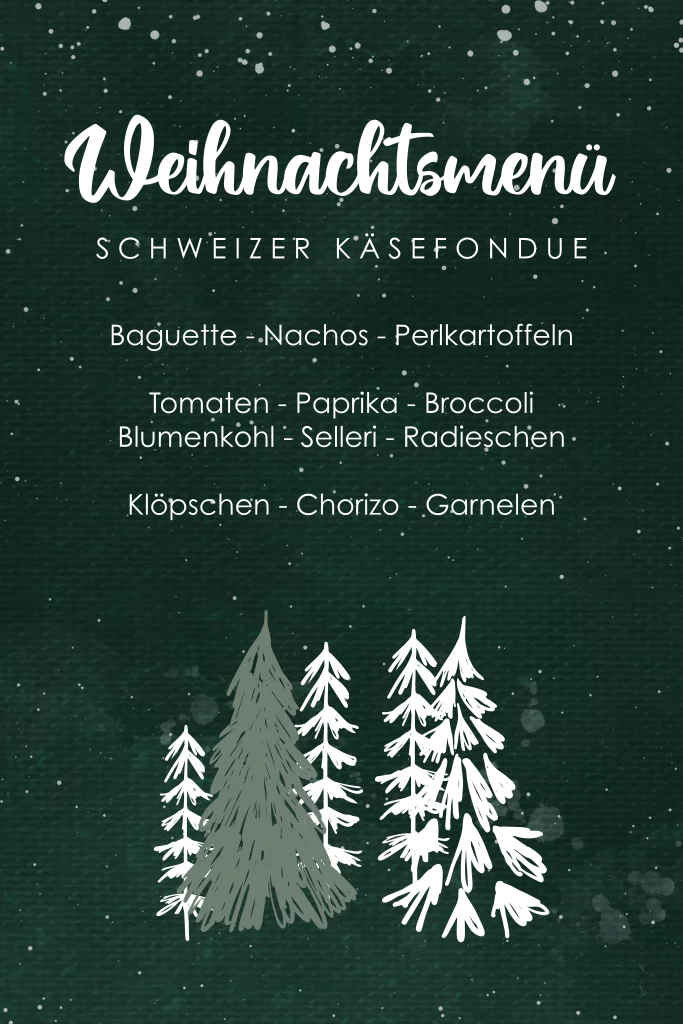 Weihnachtliche Menükarte mit Tannen und Foliendruck