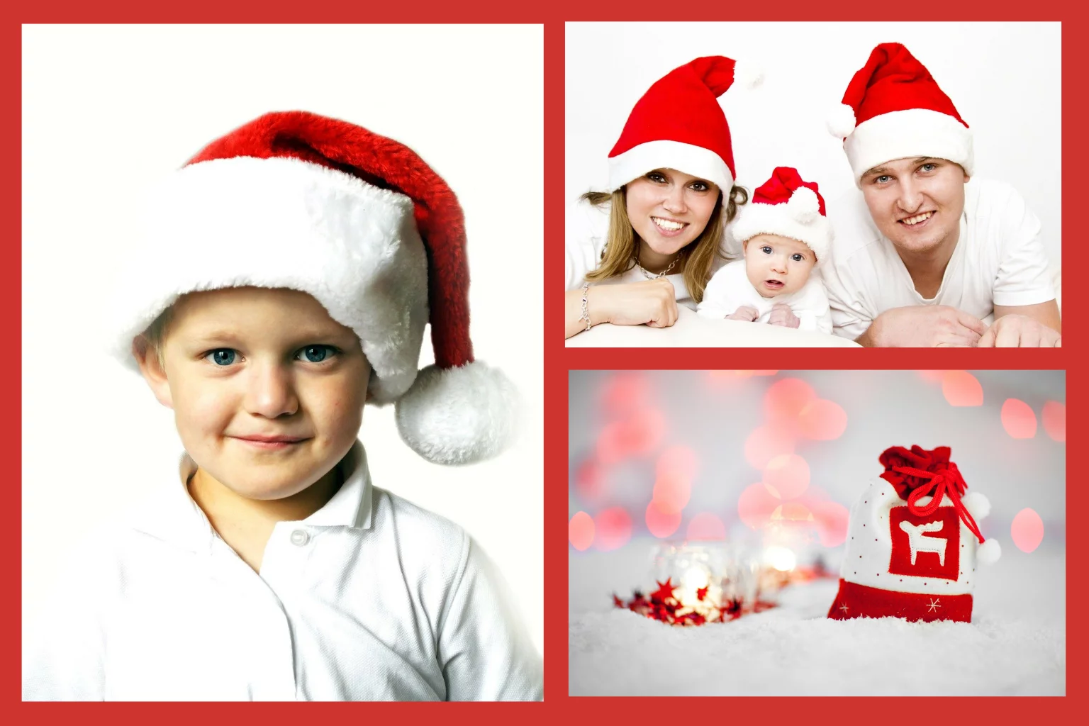 Weihnachtskarte mit rotem Hintergrund und eigener Fotogallerie