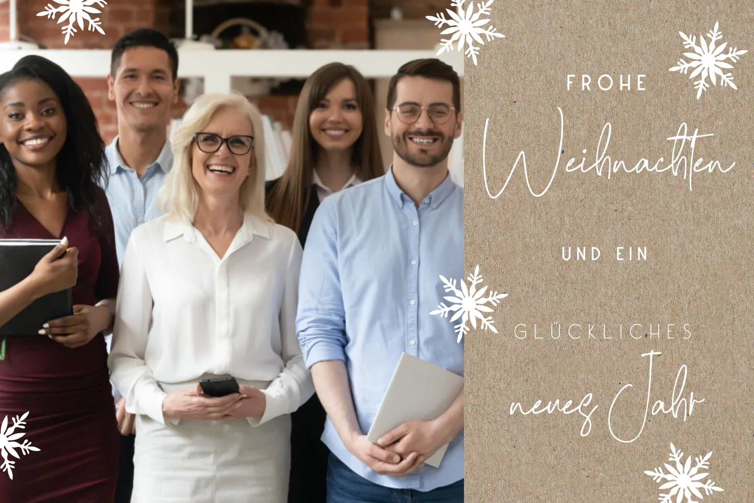 Business-Weihnachtskarte mit Foto im Kraftlook und Sternen