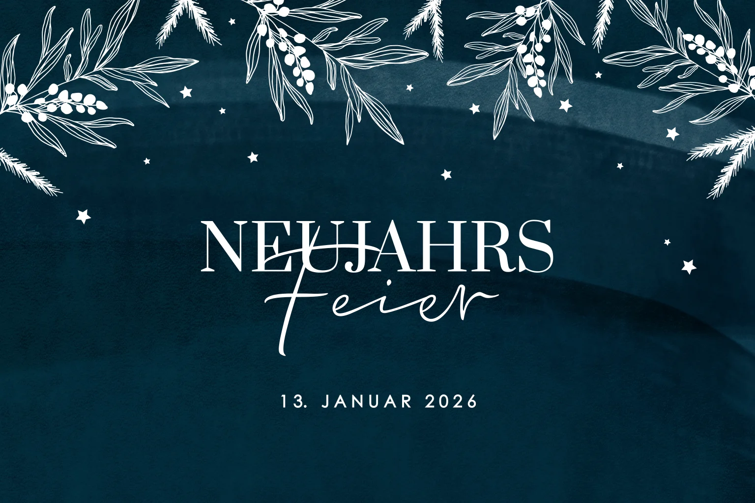 Feierliche geschäftliche Einladung zur Neujahrsfeier mit Mistelzweigen und Sternen