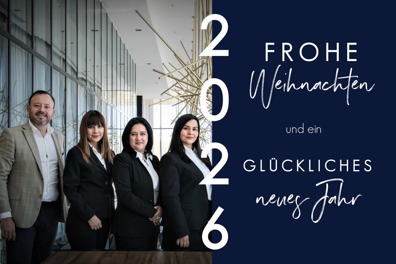 Geschäftliche Weihnachtskarte in Dunkelblau mit Foto