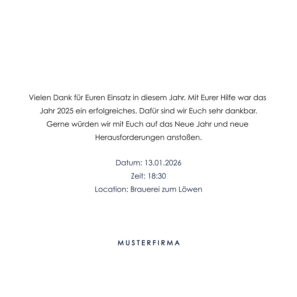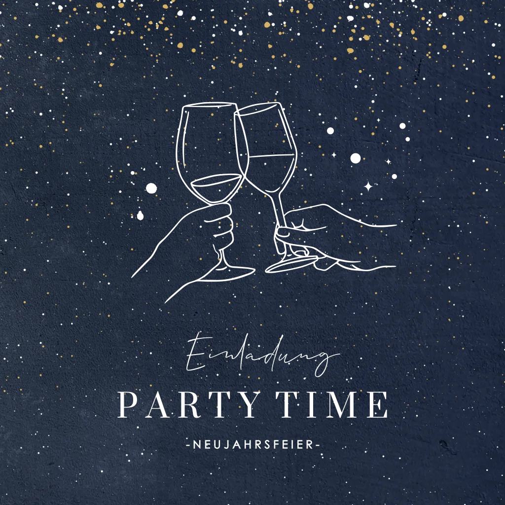 Geschäftliche Einladung zur Neujahrsfeier mit Sternen und Weingläsern