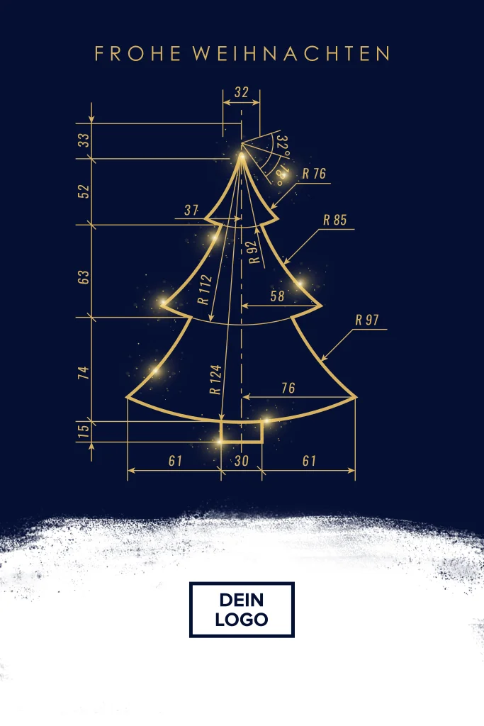 Geschäftliche Weihnachtskarte mit Bauplan einer Weihnachtsbaum